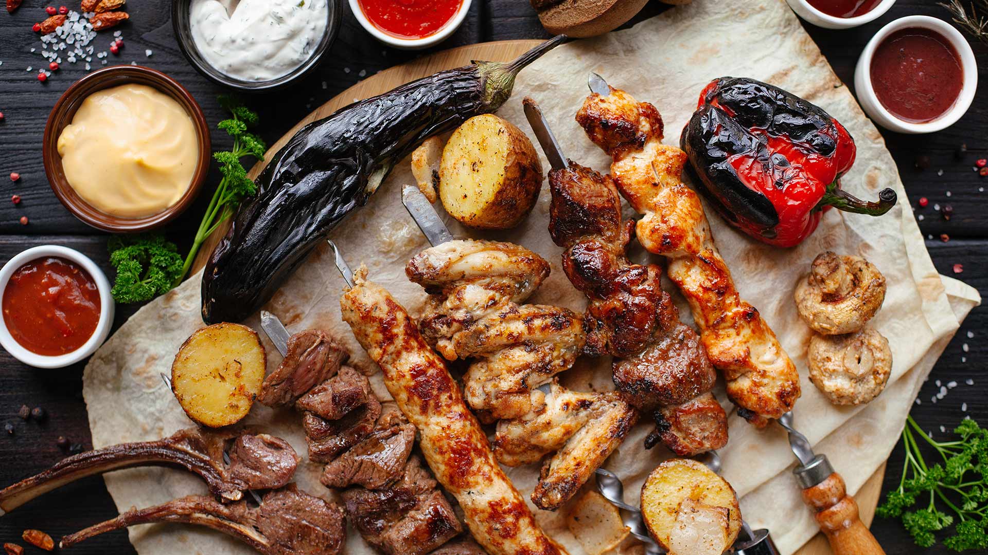 Although the sliced meat can be served on a platter with rice and cooked vegetables, it’s most popular as a sandwich eaten as fast street food. You might find tomatoes, lettuce, cucumbers, red onion, cucumbers, or pickles inside the pita, and the sauce might be Greek yogurt-based tzatziki or Middle Eastern tahini.